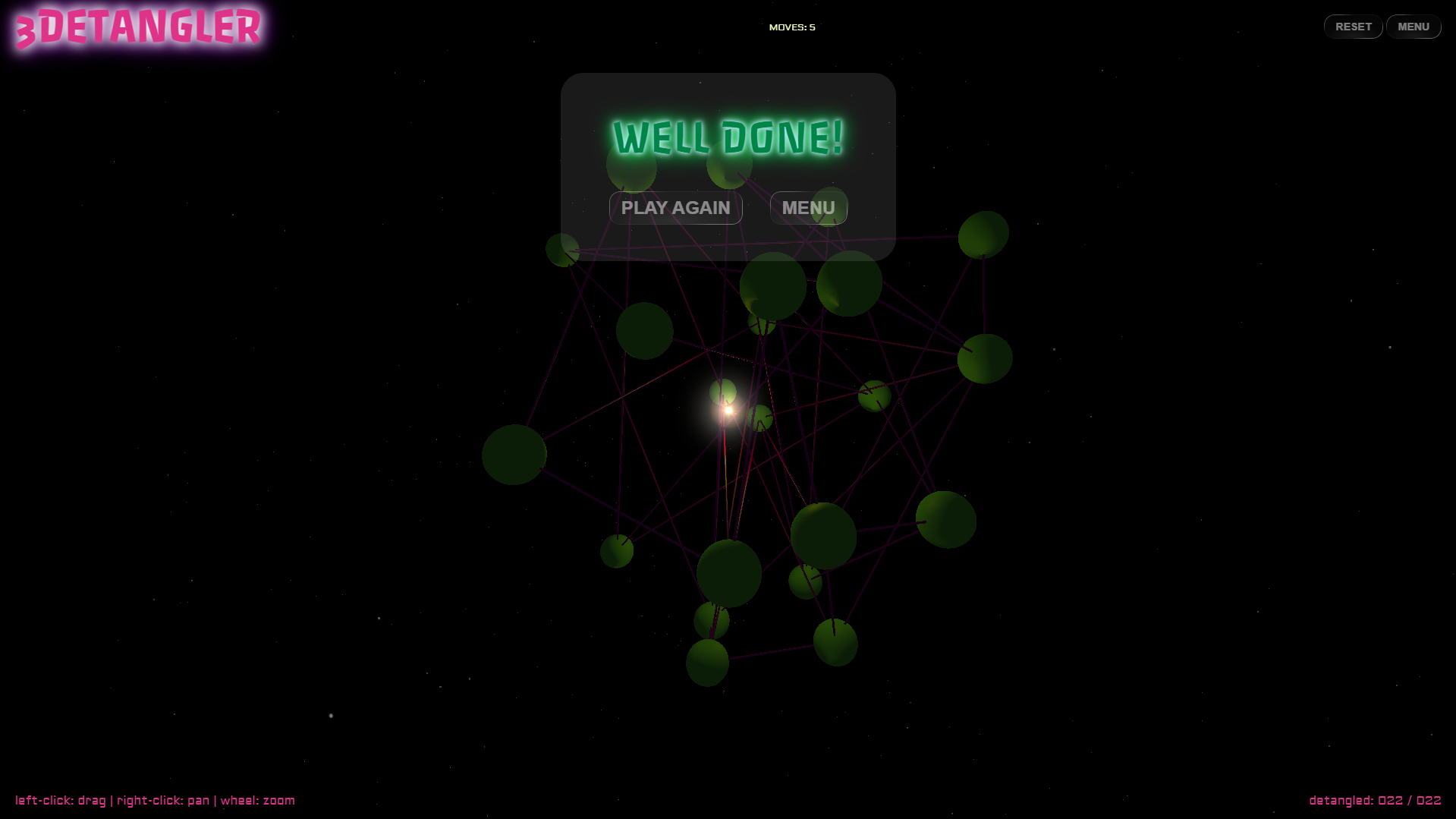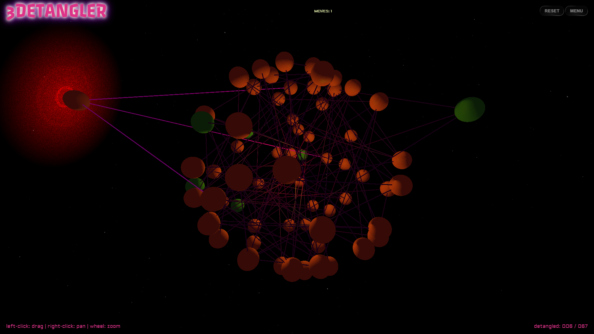 3Detangler was inspired by a 2D version that I used to play online 10+ years ago. I always wondered how well it would work in 3D so I created it.